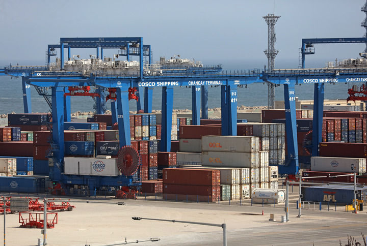 这是2025年10月7日拍摄的秘鲁钱凯港码头摆放的集装箱。位于秘鲁首都利马以北约80公里的钱凯港于2024年11月正式开港,标志着中秘共建“一带一路”取得新的重要成果。(新华社发 玛丽安娜·巴索/摄)